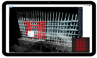 LiDAR付きのiPad等を活用することで点群データを取得し、その点群データを3次元モデルに変換することで、配筋検査における検査項目の実測値を自動で帳票化することが可能です。