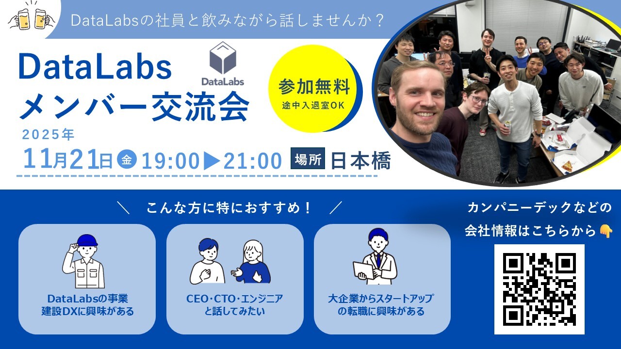 DataLabsでは、建設業界のDXや3Dデータ活用に興味のある方と、社員が気軽に交流できる「メンバー交流会」を開催しています。